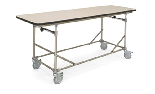 Made of sturdy, lightweight anodized aluminum, our A2 changing table allows the user to ajust tabletop heights at both ends. The top is made of stain-resistant laminate and resists distorting or sagging. Also includes four swivel-locking wheels with brake.